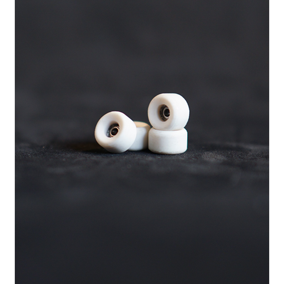 The Oak Wheels RV2V are the iconic version of RV2 Oak Wheels. They have exactly the same diameter and hardness as the RV2 wheels but with an improved V shape. Wider and heavier, this wheels will improve inertia, stability and help you lock into the grind. They are wider for more stability while landing your tricks. They are also bit heavier. The extra weight under your setup helps to improve the rotation of your fingerboard during flip tricks