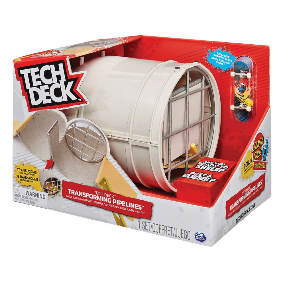 Drop in and get stoked for the Tech Deck Transforming Pipelines modular skatepark playset!